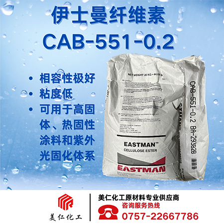 伊士曼醋酸丁酸纤维素(CAB-551-0.2)是一种高丁酰基含量,较低分子量的纤维素酯。它与许多交联树酯均混溶,在同等固体含量时黏度较低。在涂料中使用 CAB-551-0.2 时可得到 水白色涂膜、降低表面粘性、表面斑点、减少缩孔、改进涂料流动性和再流平性,提高层内附着力和紫外线稳定性。适用于面板性交联型涂料,它与许多交联树脂具有良好的混溶性在许多溶剂和混合溶剂中溶解良好可作为多种涂料的助剂。