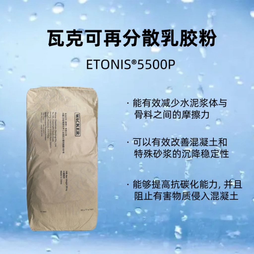 •ETONIS® 5500 P 是一款相对较硬的胶粉, 对流变性能没有明显的改变,它比较适用于高强度混凝土或砂浆产品的配方体系。